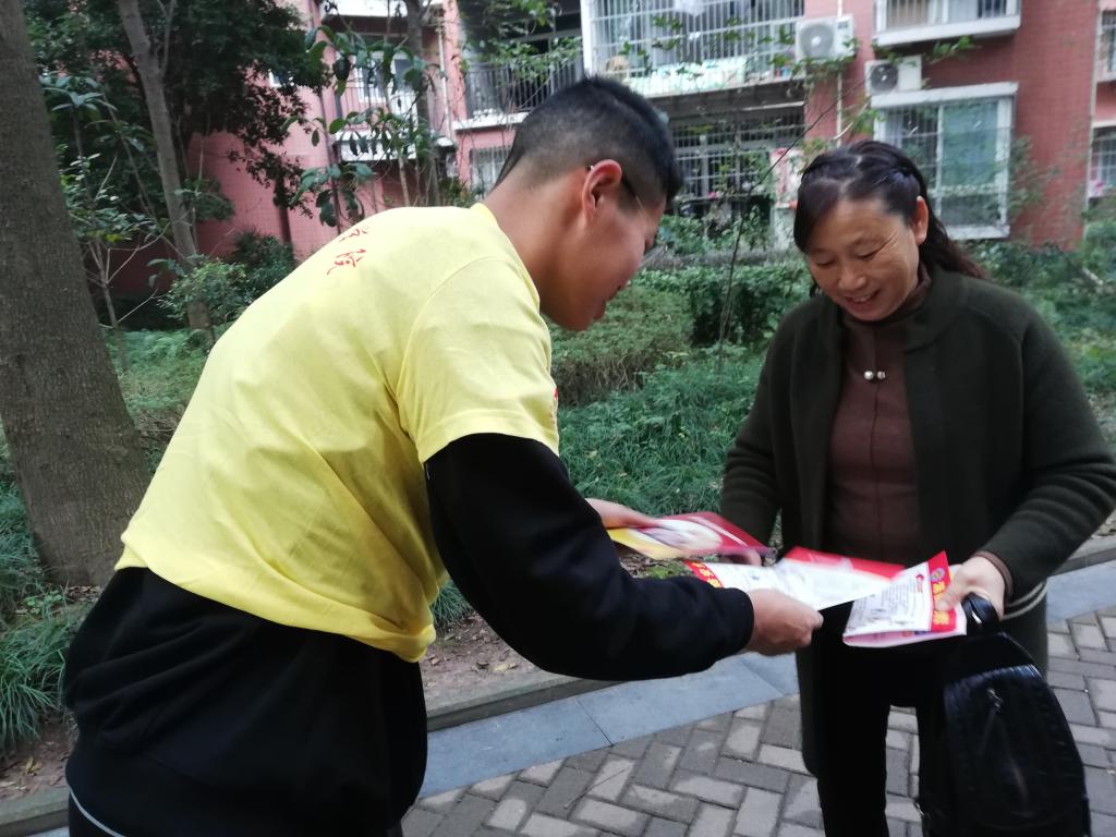 上午9:00,志愿者们来到学府雅苑和五里店社区群众发放了消防宣传手册、宣传单,宣讲消防安全知识,并按照居民小区建筑消防安全检查要点,开展小区单元楼消防安全隐患排查的活动。志愿者们还在各个楼道贴消防知识海报,并给广大社区群众讲解如何在火灾现场逃生的方法。