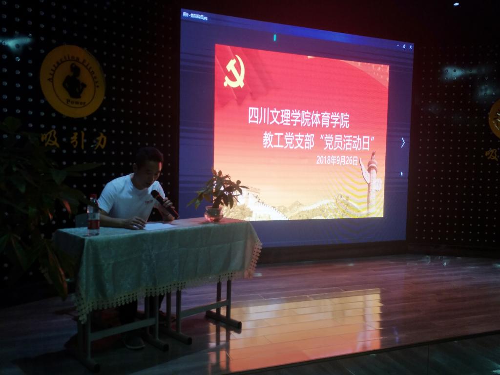 2018年9月26日下午17:00,我院教工党支部在吸引力健身中心会议室,召开了党员活动日学习活动。本次活动由学院党总支书记佘涛主持,全体党员参加了学习活动。
