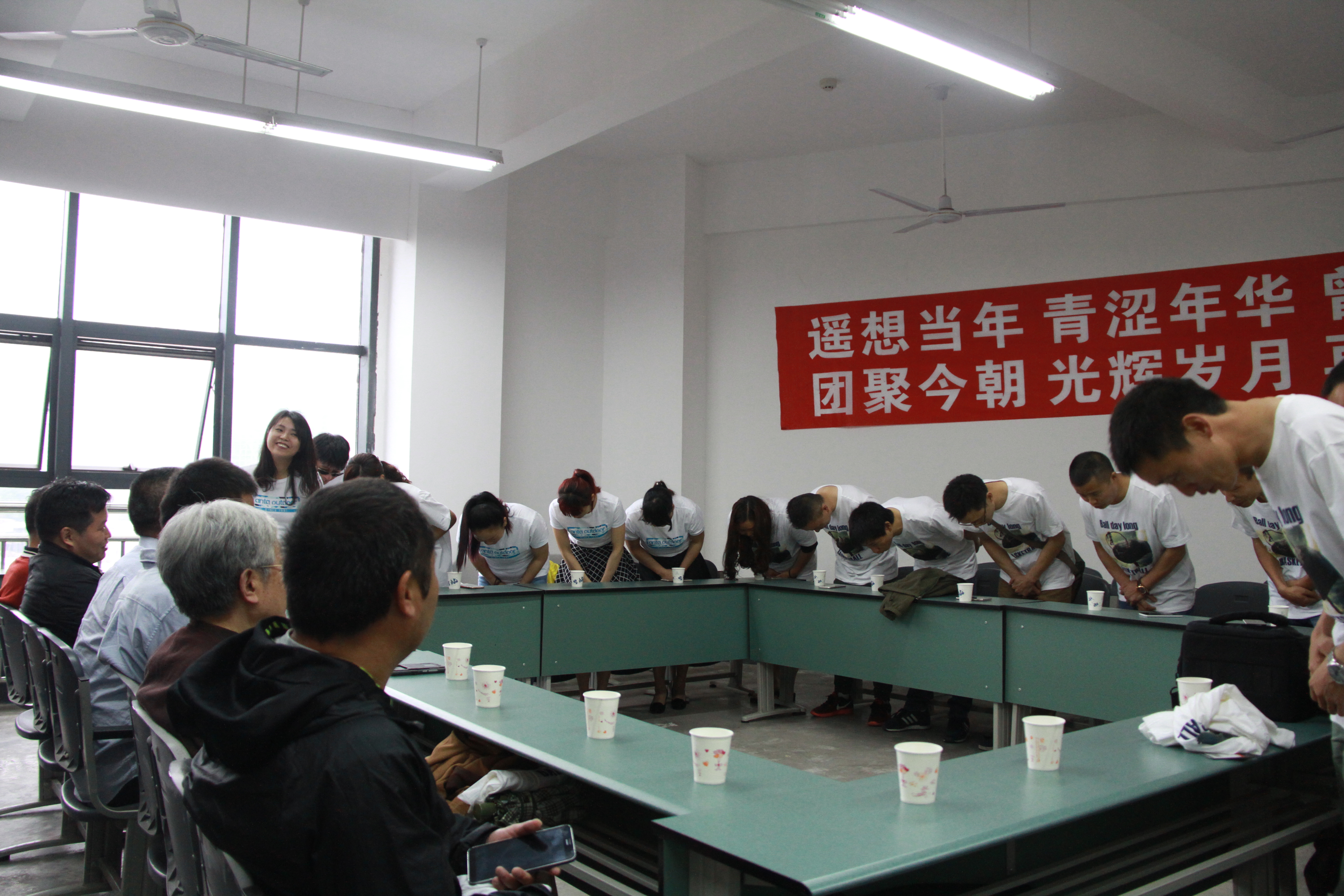 座谈会上,校友代表陈智向到场的领导及教师汇报了举办本次校友会的目的,正值学校40周年校庆,毕业十周年的03级校友希望借此机会,向老师表达感恩之情。校友代表黄小东做大会发言,汇报十年来同学们的发展境况。