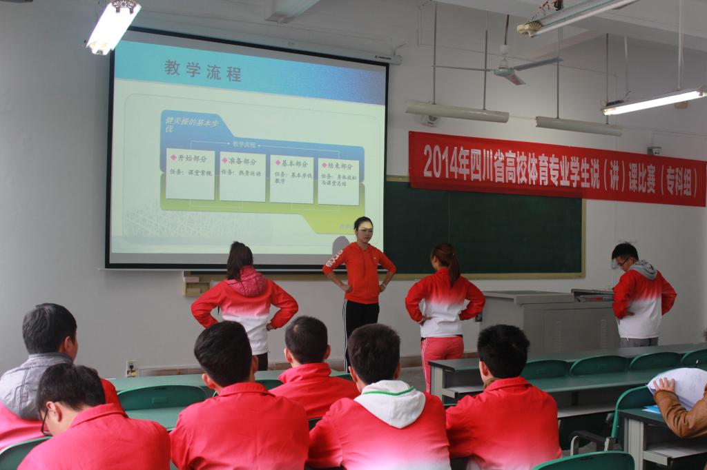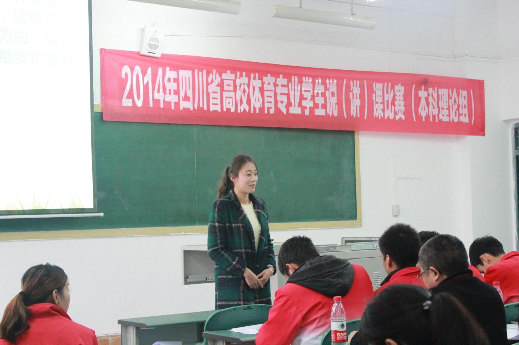 据了解,2014年四川省普通高等院校体育专业学生说(讲)课比赛由四川省教育厅主办,全省共15个体育院校,55名本(专)科同学参赛