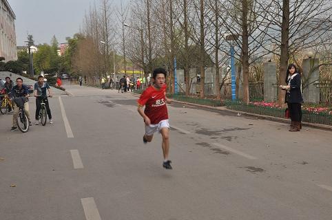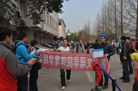初春的达州,桃红李白,油菜花香沁人心脾。下午3时,所有老师和参赛队员在学校行政楼前出发点整队集合,随着裁判员手中的一声枪响,650余名同学如离弦的箭一跃而出,你追我赶,激烈异常。途中道路弯曲、坡度大,同学们毫不畏惧,尽管汗流浃背,气喘嘘嘘,但是个个精神振奋、激情昂扬。赛道途中设多个服务点,为比赛的同学提供热情的服务。沐浴着和煦的春风,同学们奋力拼搏,克服困难,把大学生的青春与活力淋漓尽致地展现在了比赛途中。本次比赛对同学们的身体素质、竞争意识、拼搏精神和心理承受能力都是一次严峻的考验。尽管再苦、再累、再难都没有一个同学说出放弃,坚持到底,用自己的最大能力对待本次比赛。最后,20111班唐虎同学、20132班徐芳同学分别获得了本次比赛男子组、女子组第一名的优异成绩,老师和同学们合影留念使本次比赛取得圆满结束。