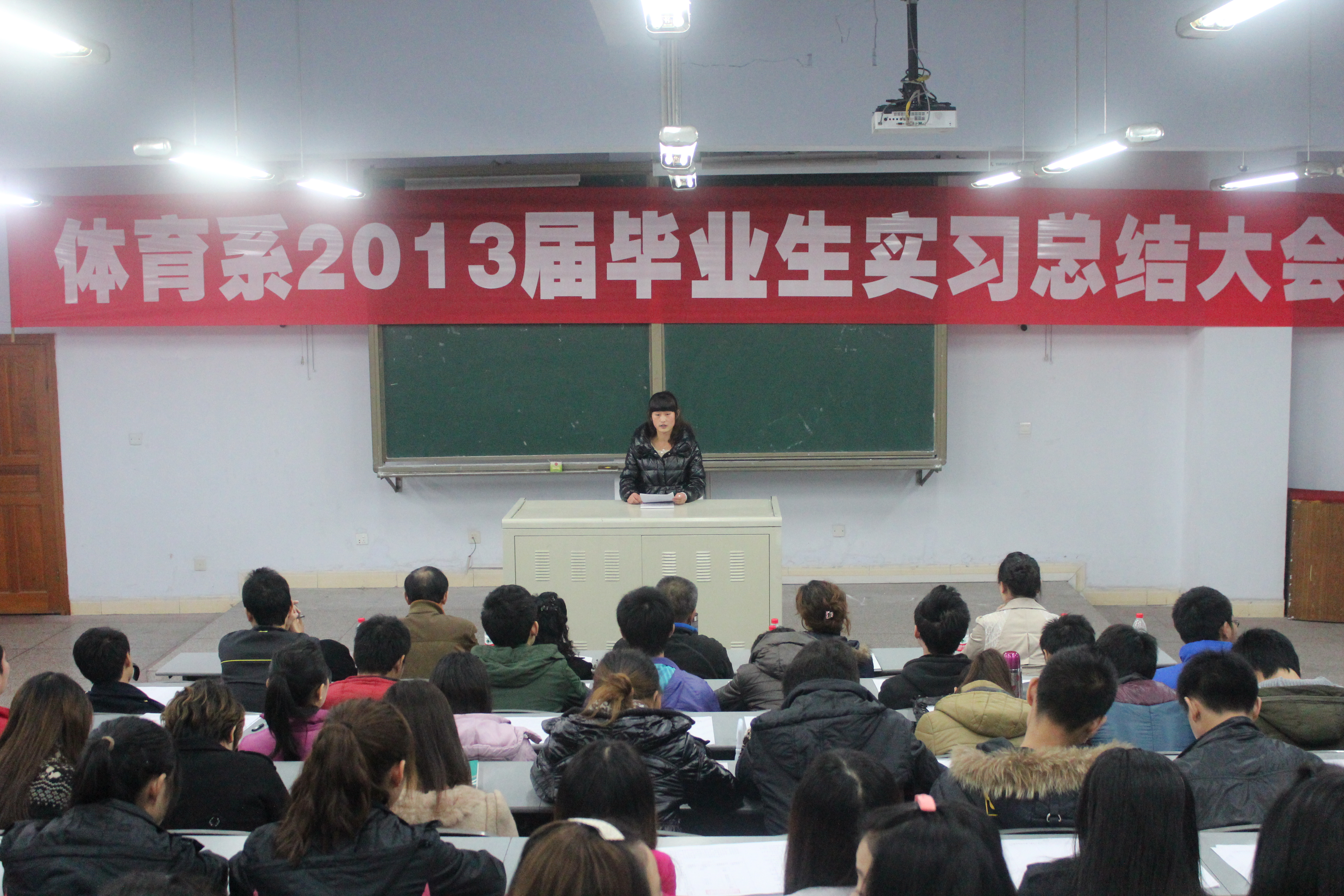2012年11月15日下午4:30,永利3044集团官网体育系2013届毕业生在莲湖校区教学楼125教室举行实习总结大会。此次大会由何其波同学主持,参加此次大会的有教务处曹科长、体育系主任董立教授、体育系副主任陈碧述教授、体育系李文华老师、体育系团总支书记兼辅导员李霞老师、体育系辅导员那明明老师,以及体育系2013届的全体毕业生。