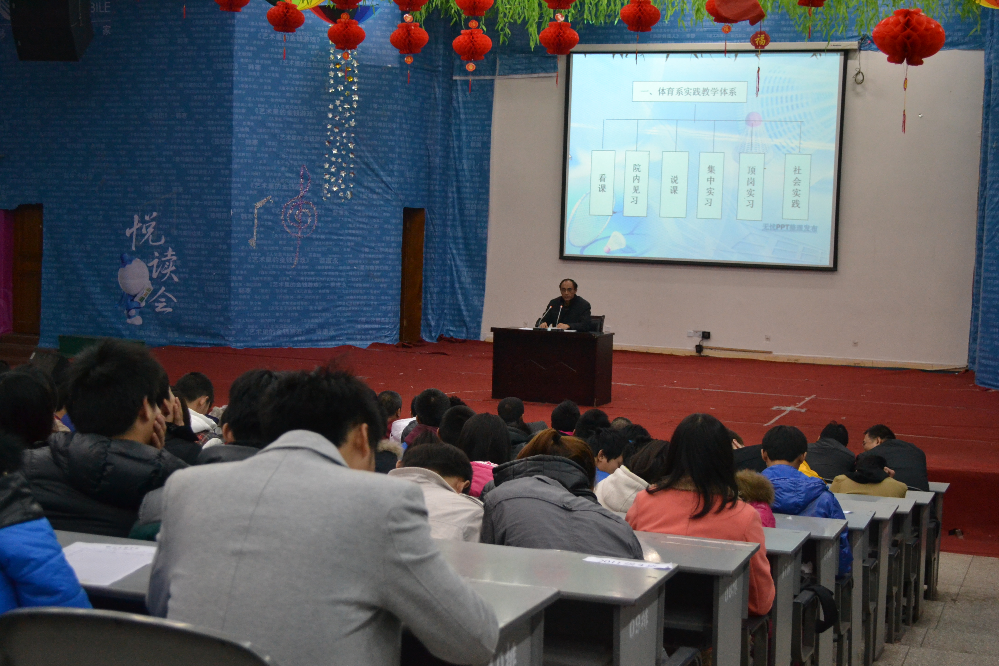 2012年12月10日晚7点,陈碧述教授在永利3044集团官网莲湖校区126教室作题为“抓好实践教学 夯实就业基础”的学术讲座。本次讲座由体育系主任董立教授主持,体育系部分教师及300余名学生到场聆听。