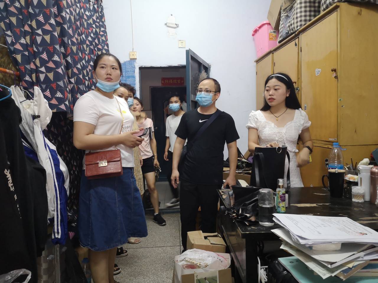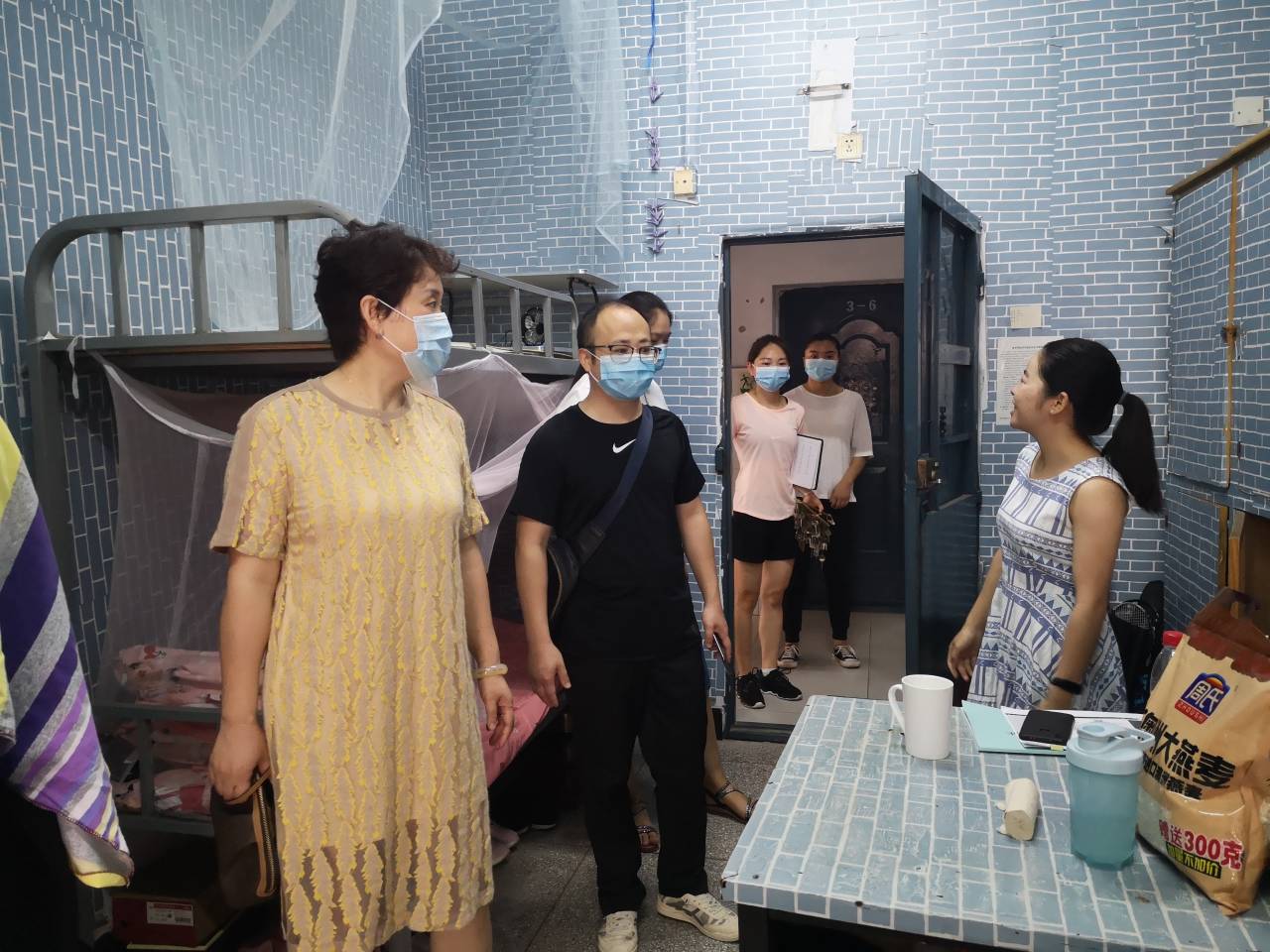 2020616日上午,学工办的老师和带班辅导员在党总支副书记彭波的带领下,走访了学生寝室。通过走访了解和查看,返校学生都能按照学校疫情防控“七案七制三流程”,严格要求,科学防范,未出现异常情况。学生宿舍总体整洁有序,学生也能协调安排好在寝室的学习和生活。对于部分寝室存在卫生死角、物品摆放不合理等问题,老师们及时提出了合理化建议。在走访毕业班学生寝室时,老师们与同学们进行了亲切的交流,现场解答了一些学生关于毕业、就业、离校等相关疑问,并对他们提出了要求和期望。