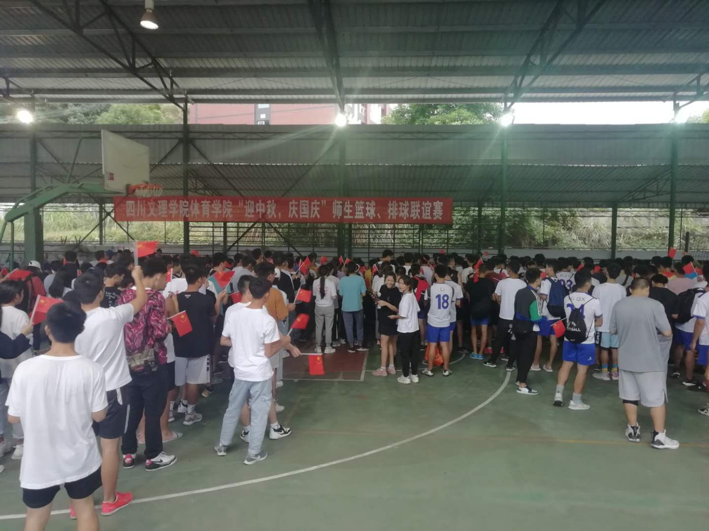 20209271620分,永利3044集团官网在篮球棚举行篮球、排球师生联谊赛,学院全体教师、部分学生代表参加了比赛。1625分,全体师生高唱《中华人民共和国国歌》,随后大家合唱了《歌唱祖国》、《今天是你的生日我的中国》,表达了全院师生对祖国生日的深深祝福。接着比赛正式开始,老师和同学们热情澎湃,斗志昂扬,切磋球技,球场边助威声、欢呼声不断。伴随着夕阳西下,师生联谊赛圆满结束。