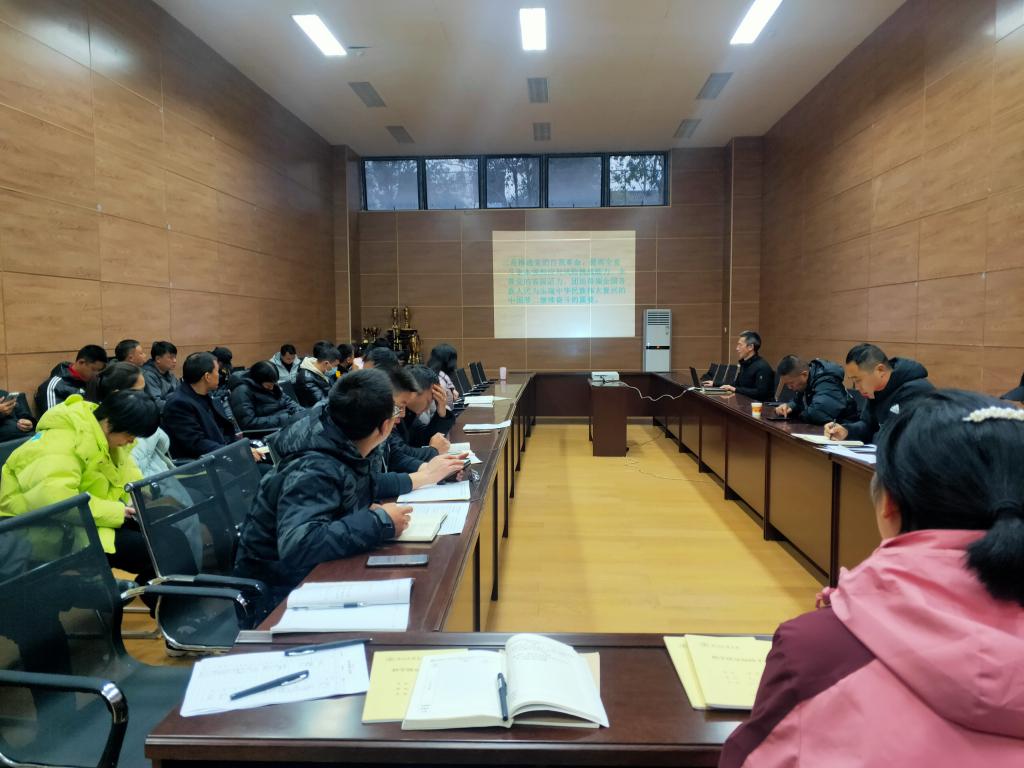 1215日,永利3044集团官网全体教职工在体育馆副馆集中学习党的十九届六中全会精神,党总支书记王兆忠主持学习会并作学习辅导。