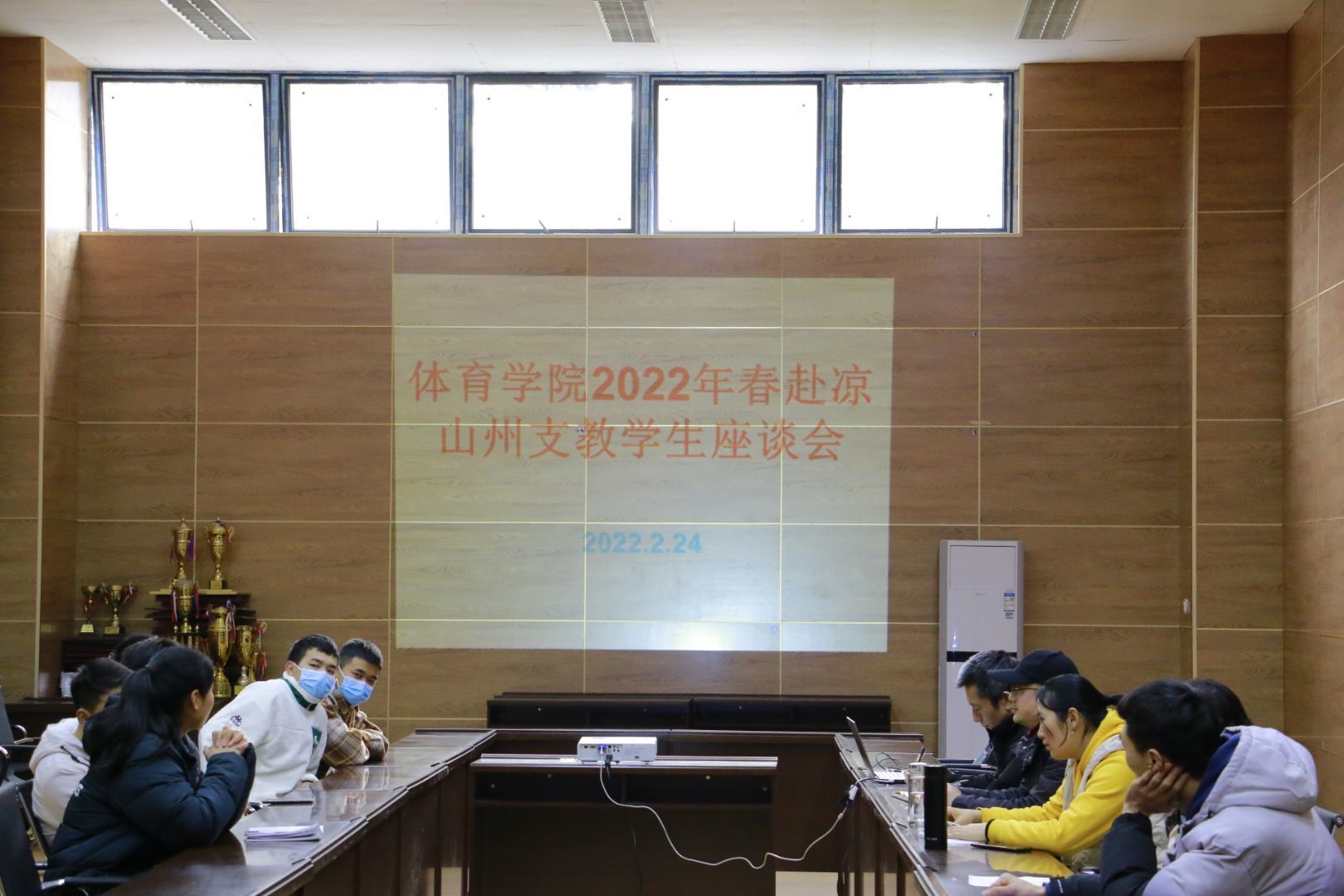2022224日下午,永利3044集团官网在体育馆附馆105召开了2022年春赴凉山州支教学生座谈会。永利3044集团官网党总支书记王兆忠,院长佘涛,党总支副书记彭波,团总支书记祝利平,部分专兼职辅导员以及支教学生参加了本次座谈会。会议由辅导员闫青主持。