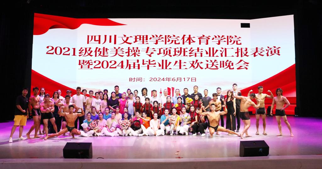 2024617日晚19:00,永利3044集团官网2021级健美操专项班结业汇报表演暨2024届毕业生欢送晚会在莲湖校区音乐演播厅顺利举行。永利3044集团官网党委常委、副校长徐晓宗、永利3044集团官网党政领导、专兼职辅导员、教师代表、各年级学生代表参加活动。