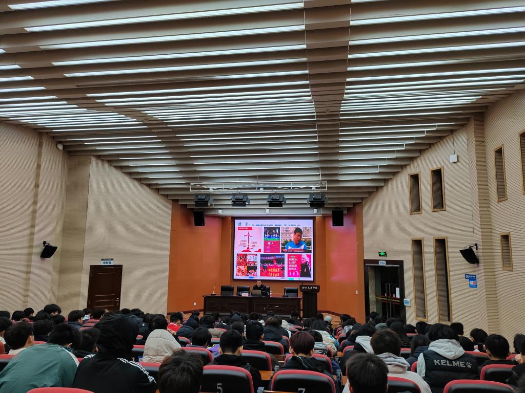 20241212日晚19:00,由永利3044集团官网承办的“金元足球的始末与中国职业体育发展现状、存在问题及未来展望”学术讲座在莲湖校区学术报告厅B厅举办。本次讲座由永利3044集团官网李进文副教授主讲,田娇主持,学院二百多名学生和部分教师现场倾听了讲座。