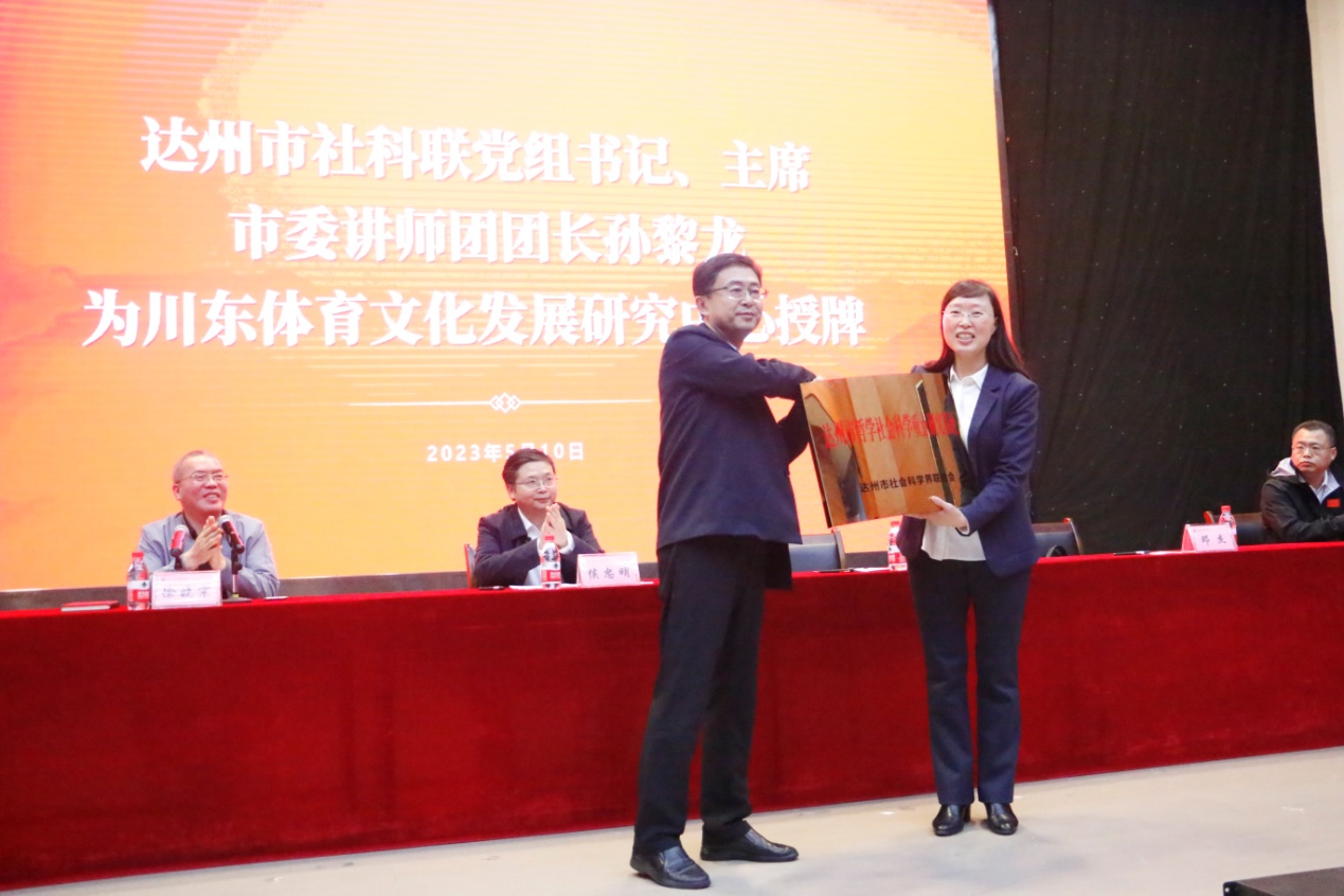 授牌仪式上,达州社科联副主席罗波宣读了《达州市社科联关于认定川东体育文化发展研究中心为达州市哲学社会科学重点研究基地的通知》。经市社科联党组研究决定,认定川东体育文化发展研究中心为达州市哲学社会科学重点研究基地。达州市社科联主席孙黎龙为中心授牌。