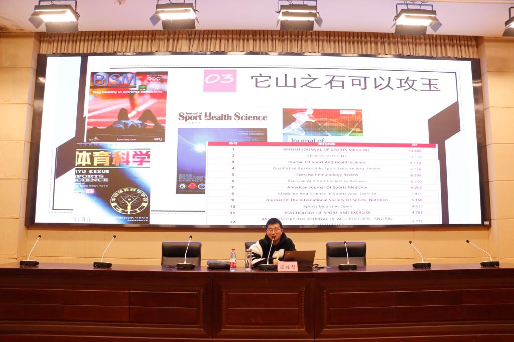 盛佳智作题为《如何从已经发表的论文中寻找思路和提高体育科技论文的写作》的学术讲座