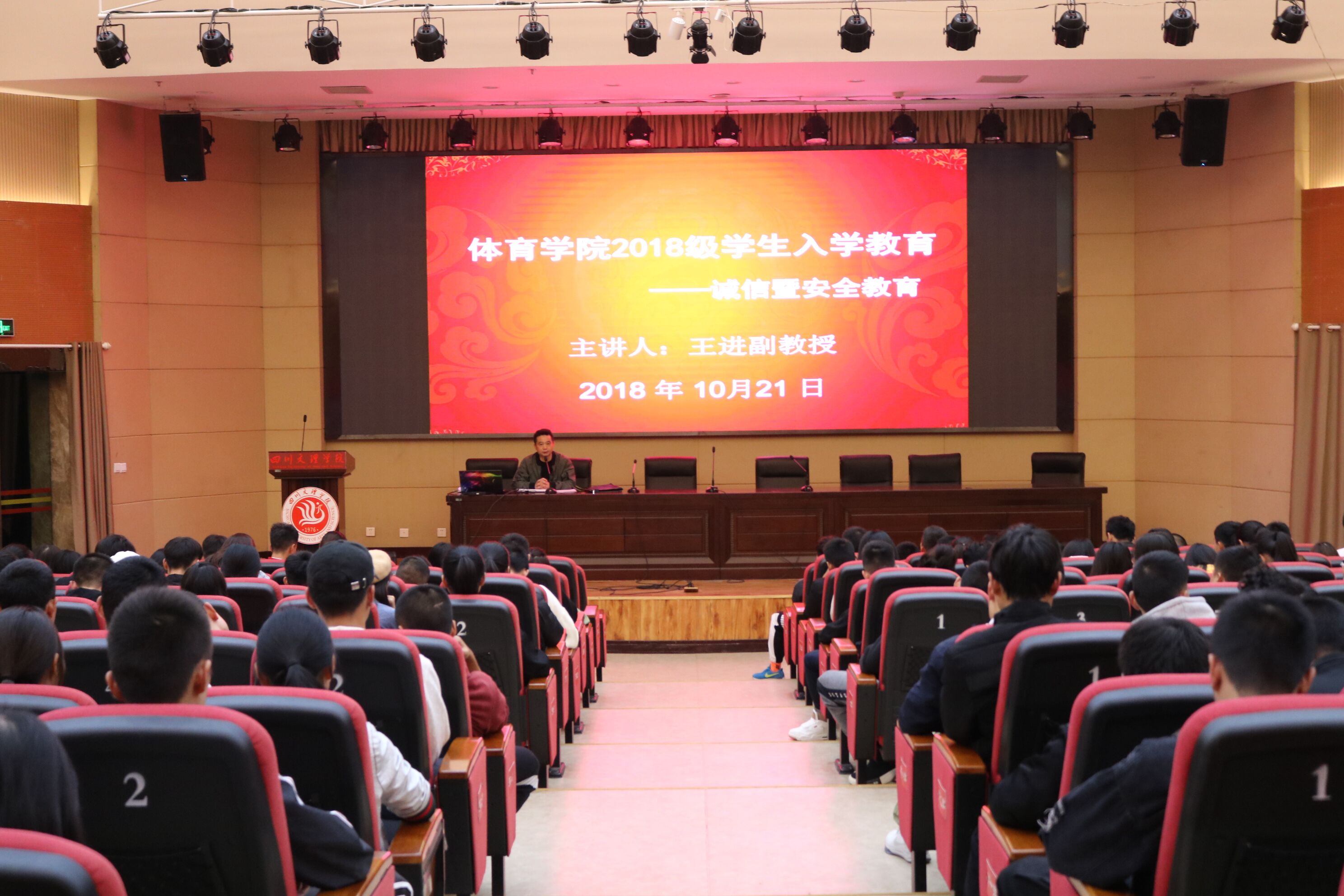 首先,王进副教授主要讲解了大学生诚信缺失方面的表现、原因及其解决措施,要新生明确自己要成为一个诚信的当代大学生。其次针对同学们的安全意识以及同学们在日常生活中的安全事项做了详细的讲解,让同学们树立校内外的安全意识。最后,结合《永利3044集团官网学生手册》向新生们讲解了有关校规校纪的知识,让同学们深入了解学校的规章制度。辅导员石娇娜老师总结并特别列举了最近发生的几件安全事故,使同学们能够切身体会并树立高度的安全意识。