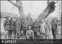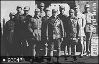 于1941年秋在淮北泗阳县新兴圩子合影。 右起:九旅政委康志强、三师副师长张爱萍、副军长张云逸、军宣传部长冯定、军长陈毅、九旅旅长韦国清、九旅政治部副主任张震寰、四师师长彭雪枫、九旅政治部主任张振球