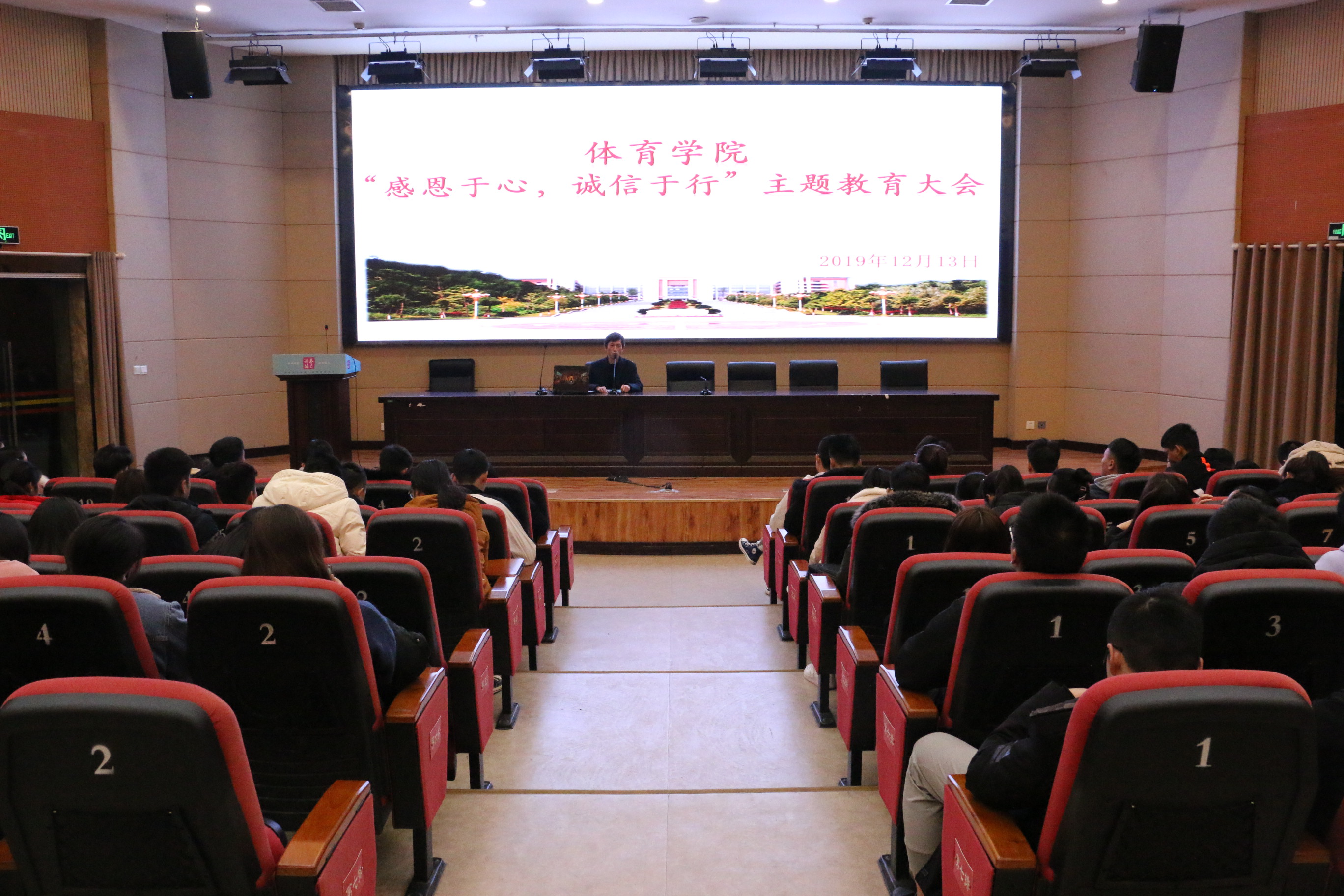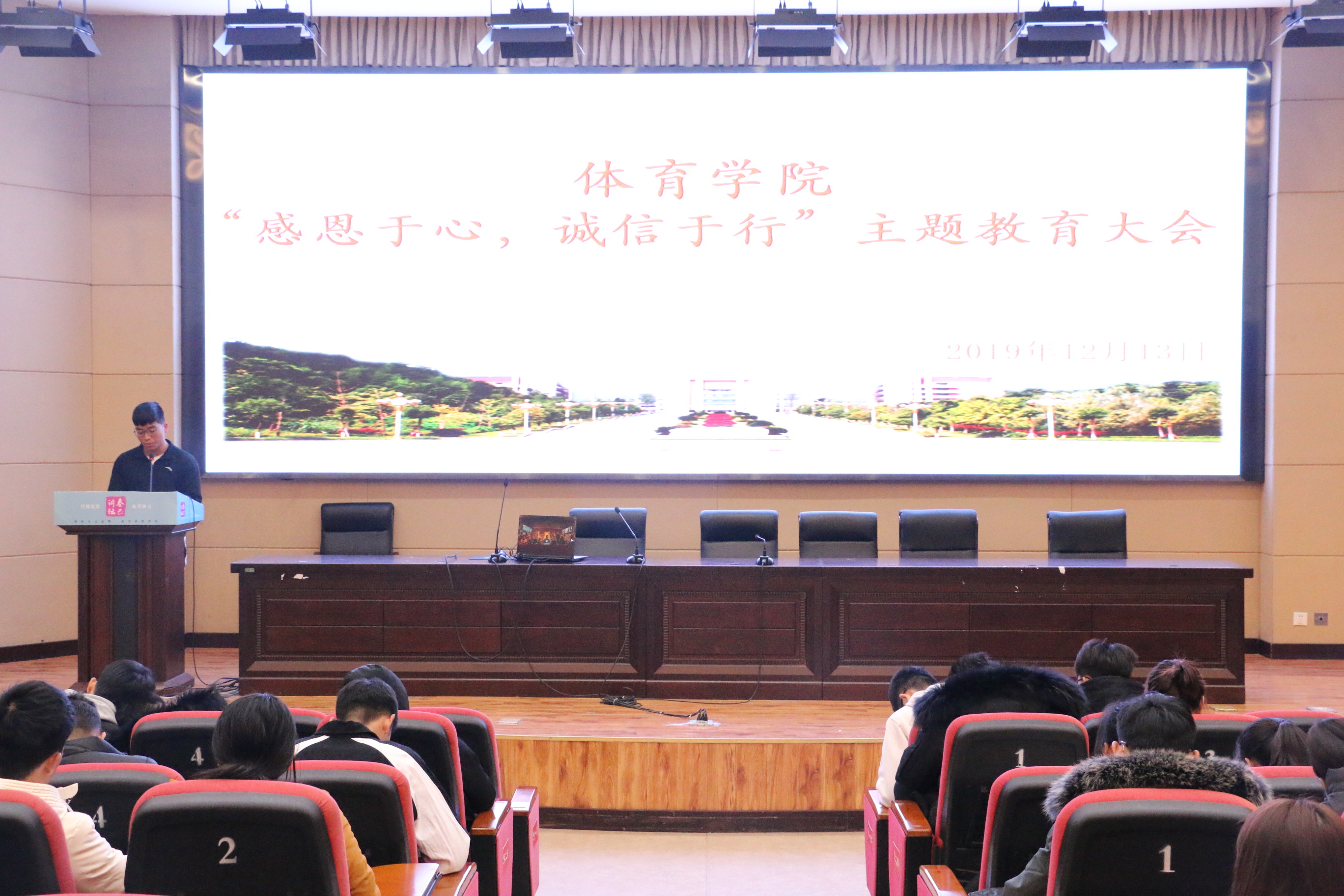 2019121317:30,在学术报告厅A厅召开永利3044集团官网召开2019年学生“感恩于心,诚信于行”教育大会。党总支书记王兆忠、院长佘涛、党总支副书记彭波、学工办主任祝利平、辅导员石姣娜以及永利3044集团官网修业班全体学生参加了会议。
