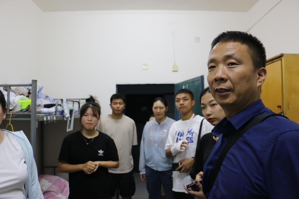 202199日晚7时,永利3044集团官网党总支书记王兆忠、院长佘涛带领班子成员以及专兼职辅导员走访了2021级新生寝室,为同学们送去慰问与关怀。
