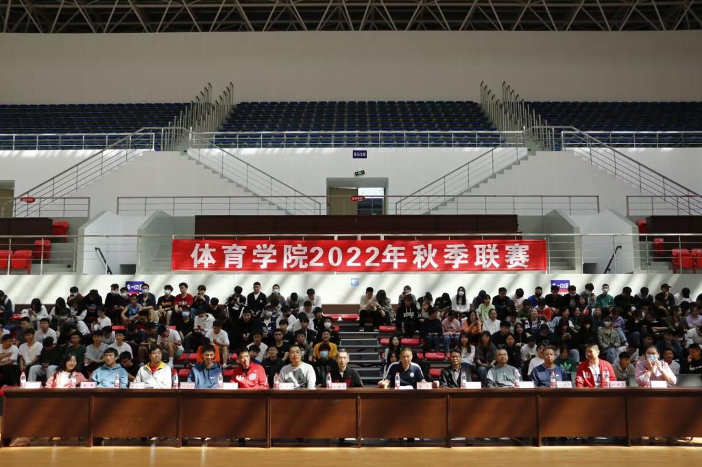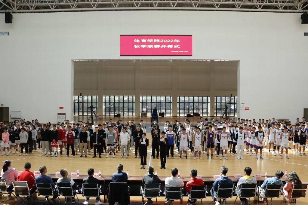 2022101812:30 永利3044集团官网2022年秋季联赛在体育馆拉开帷幕。永利3044集团官网党总支书记王兆忠,院长佘涛,副院长孙亮亮,组织员卫洪春,篮球、排球、羽毛球、乒乓球专项教师代表,专职辅导员,2022级和2021级学生以及参赛运动员代表参加开幕式。