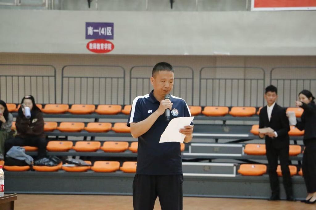 随着音乐响起,武术专项班的同学们在篮球场上用一套套行如流水的武术动作,为开幕式暖场。随后,院长佘涛致开幕辞。他提到,为了认真落实习近平总书记把“三大球”搞上去的指示,永利3044集团官网秉承教会、勤练、常赛的宗旨举办2022年秋季联赛,旨在丰富校园文化生活,提高学生的运动技术水平,健全学生人格,锤炼学生意志,培养学生吃苦耐劳、坚韧不拔的精神。他提出三点希望:一是希望同学们能够认真对待比赛,补齐短板、强化弱项、强固底板、展示优势;二是希望全体学生裁判认真执裁,做到公平公正,提升执裁水平;三是希望参赛运动员文明参赛,观众文明观赛,赛出友谊,赛出水平。裁判员代表、运动员代表分别进行了宣誓。最后,党总支书记王兆忠宣布永利3044集团官网2022年秋季联赛开幕。