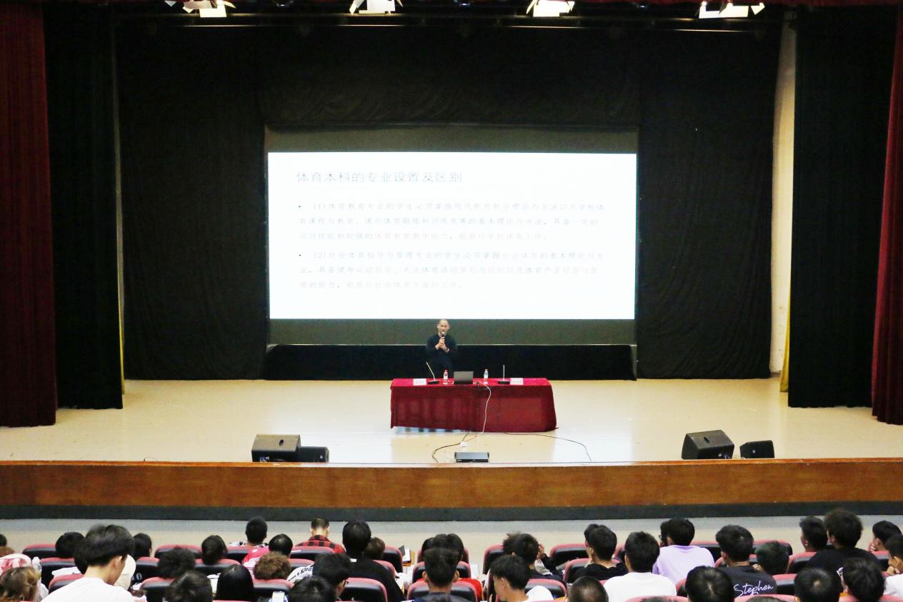 马思远讲解了体育教育和社会体育指导与管理专业的主干学科、课程设置及培养目标等,使同学们全面了解了两个专业的详情。同时,他告诫同学们:要有目标、多运动、多沟通、莫等闲,要学会主动做事。