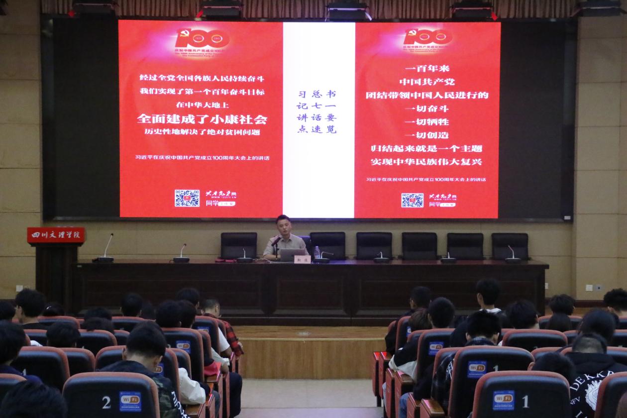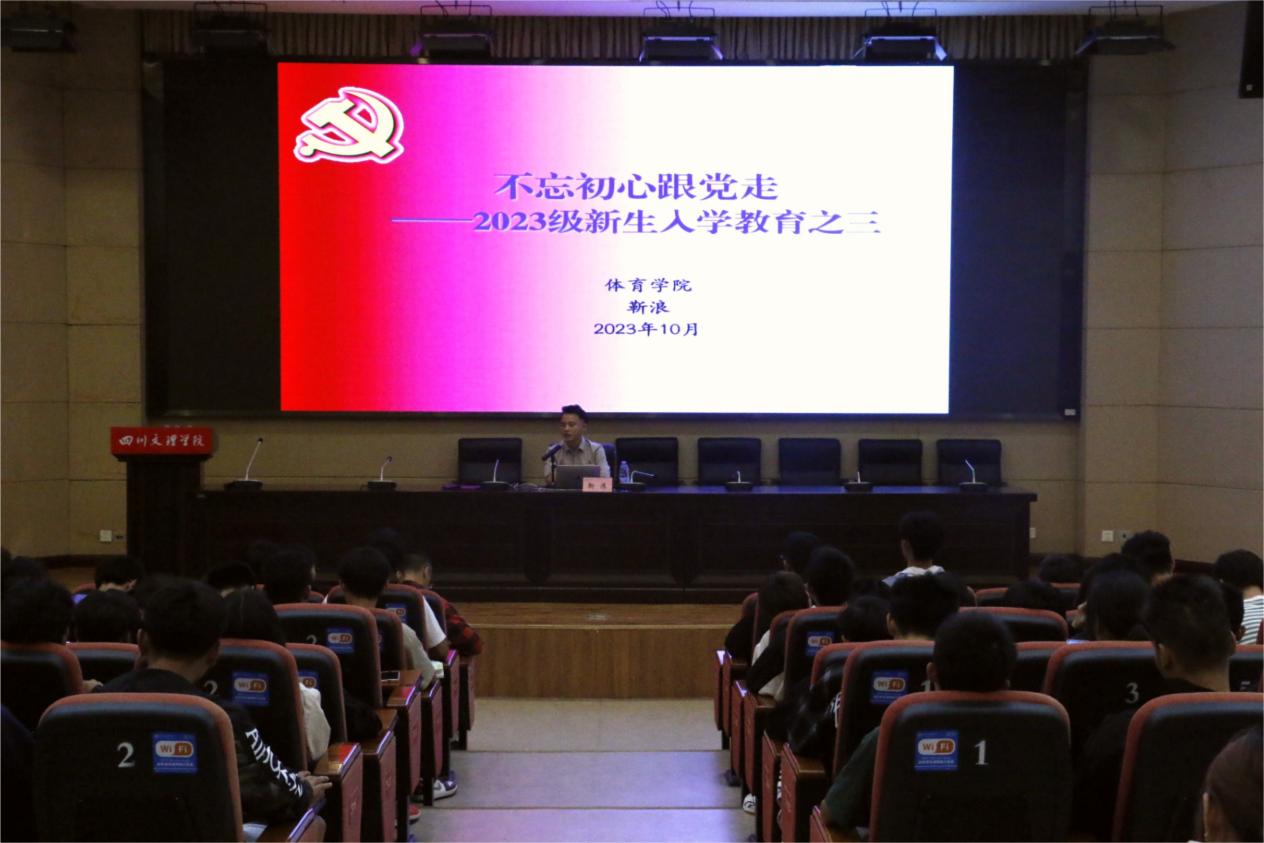 20231013日下午1点,永利3044集团官网在学术报告厅A厅开展了以“不忘初心跟党走”为主题的新生入学教育讲座。学院党委副书记靳浪担任主讲,学工办主任祝利平、辅导员李波以及2023级全体新生参加讲座。