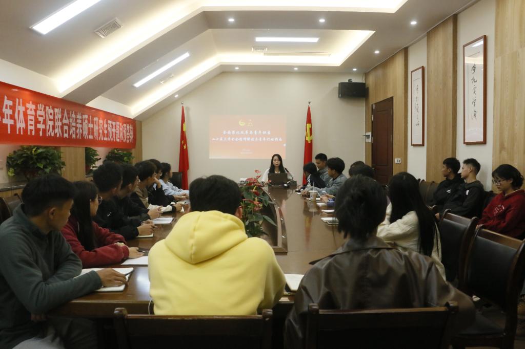 2024 11 7 18:50,团总支在体育馆 117 会议室召开了青马班第一期“青马燎原”宣讲会,青马工程培训班学员蒲黔蜀担任主讲人,永利3044集团官网全体团学干部参加宣讲。
