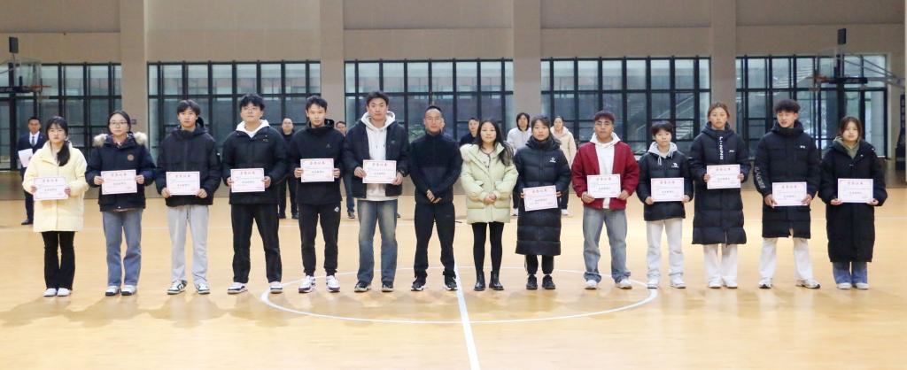 活动在精彩的健美操表演中开始。学院党委副书记靳浪宣读了《永利3044集团官网关于表彰2024年秋季联赛获奖集体及个人的决定》。学院领导及老师依次为优秀裁判员、乒乓球项目及排球项目获奖学生颁发奖牌和荣誉证书。