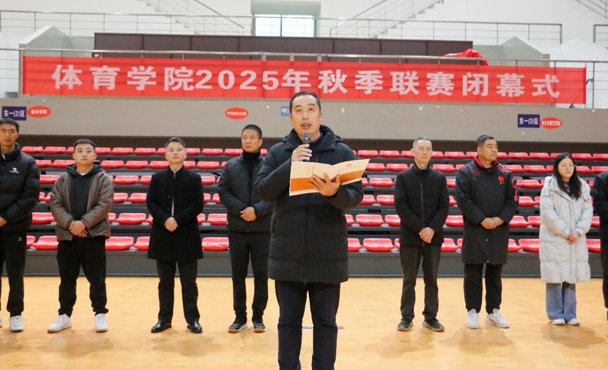 随后,参会领导、老师为优秀裁判员、获奖团队及运动员逐一颁发奖牌及证书。学院党委书记孙亮亮致闭幕辞并宣布闭幕,他指出:“这不仅仅是一场比赛,更是对体育人精神风貌的一次全面展示和成功检阅。比赛有终点,但奋斗无止境。希望全体同学把赛场上展现的拼搏精神、团队意识和坚韧品格带到今后的学习和人生道路中。”