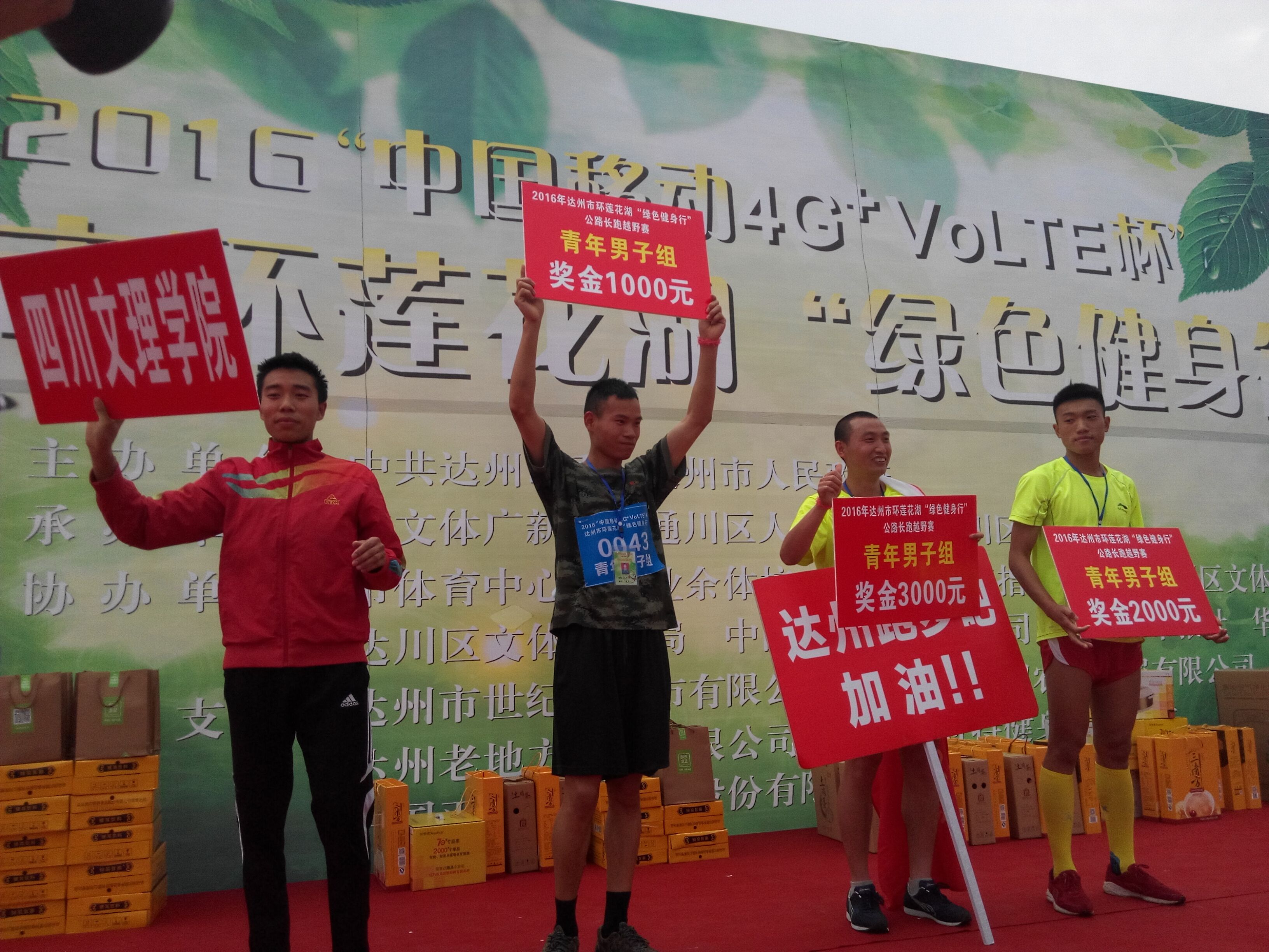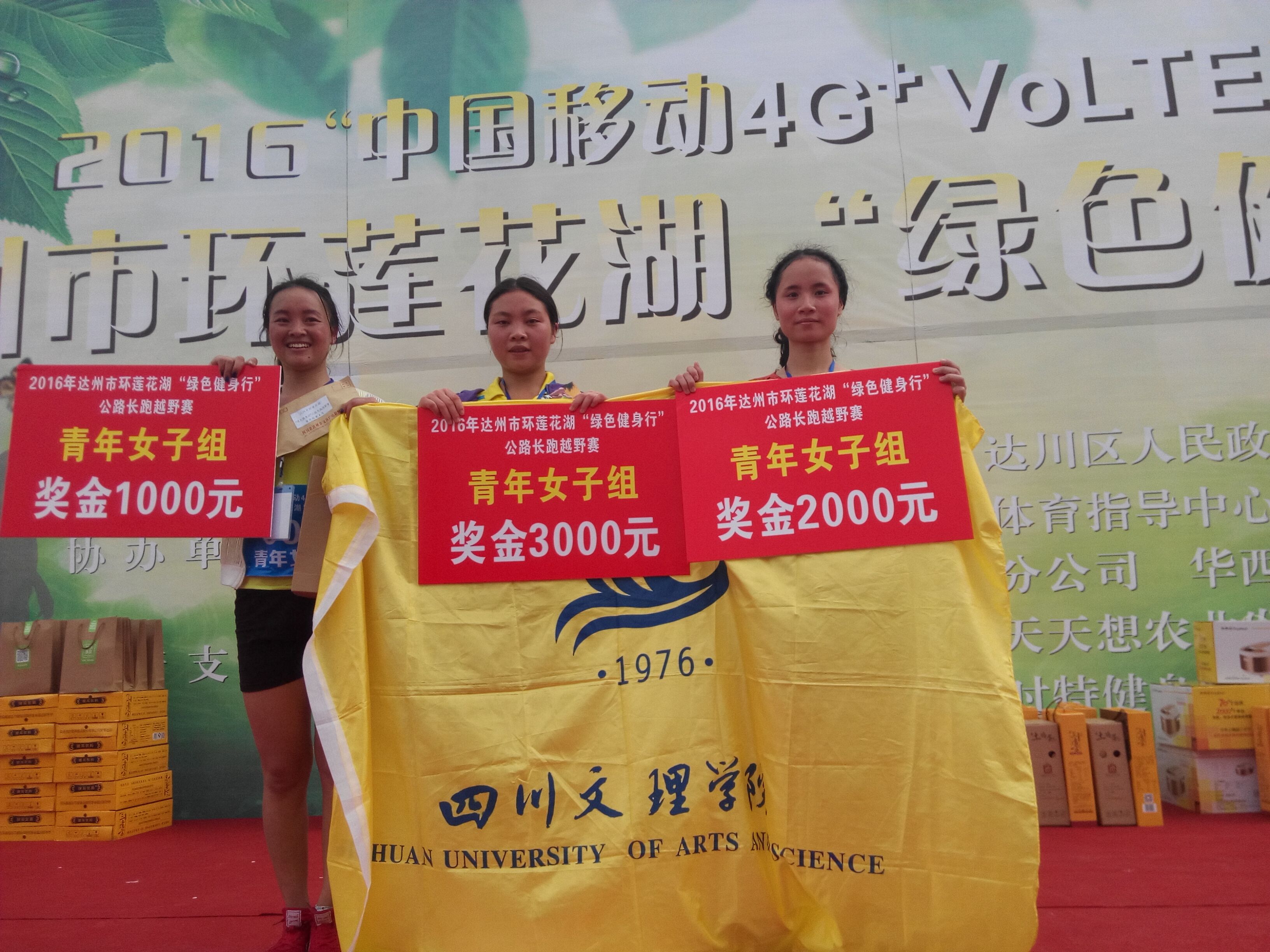 4月15日上午,2016达州市环莲花湖“绿色健身行”活动在莲花湖巴山大剧院广场隆重拉开帷幕,我院领导高度重视,组织了50名优秀选手报名参加了长跑越野项目的青年组比赛。2015级6班王菊、樊小霞、2014级8班鲁伍呷包揽了女子组前三甲;2013级8班李攀同学荣获男子组第三名。