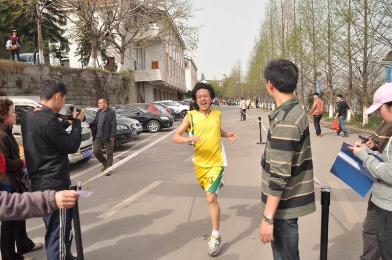 下午3时,随着体育系陈碧述副主任的发令枪响,近600名学生在校门口如离弦的箭一跃而出,你追我赶。从学院莲湖校区校门口到莲湖宾馆,全程约9公里,途中道路弯曲、坡度大,坚持跑完全程对同学们的身体素质、竞争意识、拼搏精神和心理承受能力都是一次严峻的考验。比赛中,同学们毫不畏惧,个个精神振奋、激情昂扬。在途中设立了多个服务点,体育系的老师及志愿服务同学热情地为参赛人员服务。