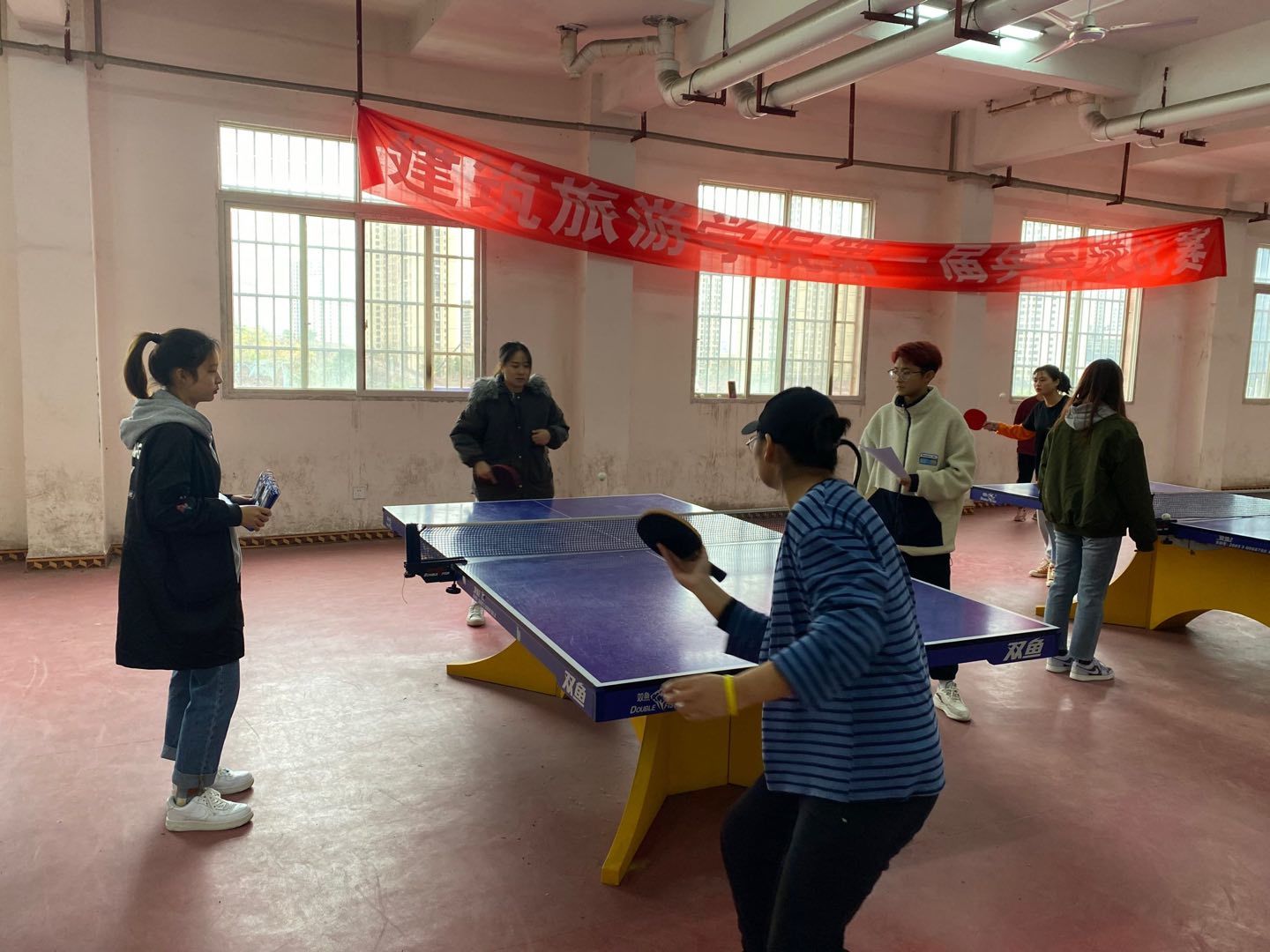 1125日在室内乒乓球室进行了为期两天的乒乓球比赛,该项目设男子单子单打和女子单打,采用乒乓球常规比赛规则和办法,随机抽签后进行淘汰赛,决出前三名。最后男子单打,20189班庾杰获得冠军,20183班钟滢杰获得亚军,20194班徐健淞获得季军。女子单打,20201班曹芮桦获得冠军,20201班杜双双获得亚军,20171班王梦茹获得季军。